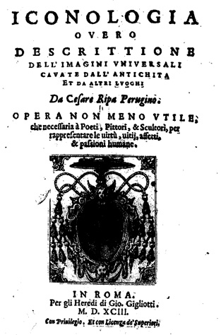 fu più volte ristampata: a Padova, per Pietro Paolo Tozzi nel 1611 e nel 1618 (nella stamperia del Pasquati), a Siena, per gli Eredi di Matteo Florimi nel 1613, infine a Parma, nel 1620, in tre volumi. Seguirono numerosissime edizioni postume, fino alla monumentale stesura in cinque volumi "notabilmente accresciuta d’immagini e di annotazioni e di fatti dall’abate Cesare Orlandi", uscita a Perugia, presso la stamperia di Piergiovanni Costantini, nel 1764-1767. Intanto l’opera si diffuse in Europa ottenendo molto successo con traduzioni in inglese, tedesco, francese e olandese. L’edizione di riferimento corrente dell’Iconologia è ancora quella curata da Piero Buscaroli, con Prefazione di Mario Praz, Torino, Fògola, 1986 (poi Milano, Tea, 1992), che si basa sull’edizione padovana del 1618 (Nova iconologia nella quale si descrivono diverse imagini di virtù, vizi, affetti, passioni umane, arti, discipline, umori, elementi, corpi celesti, provincie d’Italia, fiumi, tutte le parti del mondo, ed altre infinite materie, ampliata ultimamente dallo stesso auttore di trecento imagini), ma semplificata e ridotta notevolmente (nel frontespizio definita dal curatore come "edizione pratica). Esiste anche una ristampa anastatica dell’edizione romana del 1603 a cura di E. Mandowsky (G. Olms, Hildesheim-New York, 1970). Ripa ideò ed elaborò il suo repertorio iconologico tra l’ambiente ’dellAccademia senese degli Intronati e la corte romana del cardinale Antonio Maria Salviati a cui l’opera è dedicata e presso cui visse in qualità di familiare, per insegnare a "figurare" con i simboli "tutto quello che può cadere in pensiero umano". L’opera era indirizzata a varie categorie d’artisti, secondo la logica dell’ut pictura poesis ("la poesia è come la pittura": battuta dall’Ars poetica di Orazio ) dichiarata fin dal sottotitolo e con strettissimi legami con l’arte della memoria: Iconologia, overo descrizzione dell’imagini universali cavate dall’antichità e da altri luoghi [...] opera non meno utile che necessaria a’ poeti, pittori e scultori, per rappresentare le virtù, vizi, affetti, e passioni umane. Diversamente da geroglifici , imprese ed emblemi , le allegorie di Ripa non definiscono concetti, ma esprimono qualità, affetti , passioni , vizi e virtù mediante i tratti esteriori e "accidentali" della figura umana: "Disposizione nella testa sarà la positura alta o bassa, allegra o maninconica, e diverse altre passioni che si scoprono, come in teatro, nell’apparenza della faccia dell’uomo". Gli effetti benefici o nocivi dei più diversi moti dell’animo, il favore della fortuna o il rigore della giustizia, il livore dell’invidia o lo splendore della bellezza, sono tradotti in cipigli, sorrisi, gesti, posizioni, attraverso un’ordinata e analitica grammatica di abbigliamento, ornamenti, attributi ed espressioni. L’iconologia permette di leggere nei tratti fisici dell’uomo i segni delle sue caratteristiche morali come se, usando un’immagine che ebbe larghissima fortuna nel Rinascimento, si potesse aprire una "finestra sul cuore". E, un’arte al servizio di questo "osservatorio" è quella che lega l’iconologia alla fisiognomica . Partendo da premesse teoriche chiaramente aristoteliche , l’autore costruisce la sua topica mediante fonti diverse: letterati e artisti figurativi, poeti antichi (greci e latini) e moderni, come Dante , Petrarca , Ariosto , Vasari , Doni , Aretino , Tasso , e l’intera tradizione mitico-iconologica precedente, dalla Genealogia deorum gentilium di Boccaccio ad Alciato, Valeriano , Giraldi , Cartari . L’opera compilatoria, disposta in ordine alfabetico, è tutt’altro che un repertorio neutro e professionale. Ripa interpreta il reale in linea con i principii e i gusti artistici della Controriforma e con la progressiva formalizzazione gerarchica della società. Il suo giudizio sul presente è chiaramente espresso attraverso immagini rigorosamente ordinate e ideologizzate come l’Affabilità, l’Umanità, l’Obligo, la Ragion di Stato , la Riforma, l’Eresia, la Penitenza, la Pazienza, la Discrezione, la Prudenza. Durante tutto il Seicento l’Iconologia di Ripa costituì una topica visualizzata a uso di oratori e predicatori, oltre a godere di immensa fortuna tra artisti figurativi, poeti e soggettisti. Particolarmente significativo il caso di Giuseppe Parini che, sul finire del Settecento, utilizzò il manuale di Ripa per comporre i propri soggetti pittorici. Lessing e Winckelmann , invece, mossero accuse di scarsa originalità all’autore dell’Iconologia e ne sottolinearono i debiti verso gli Hieroglyphica di Pierio Valeriano .[Da "Rinascimento" on line di Floriana Calitti]