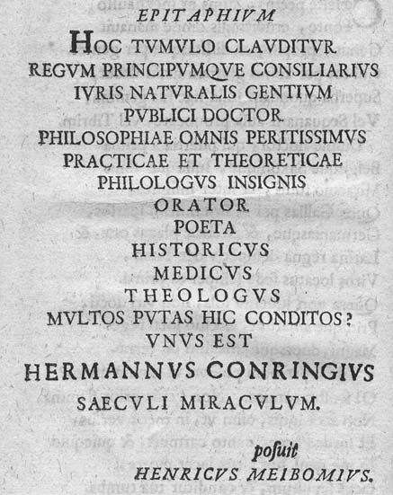 L'epitaffio del Conringius dallo stesso volume di cui sotto si tratta