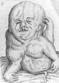 L'INCISIONE in oggetto [come ALTRE dello stesso volume dedicate ad ulteriori deformità e mostruose patologie] vorrebbe essere la proposta di osservazione per medici e studiosi della "Figura di un feto mostruoso partorito il 27 febbraio 1613 nel villaggio di Prust vicino a Danzica, fedelmente disegnato e descritto da Gioacchino Olhaf, filosofo, medico e professore di anatomia".