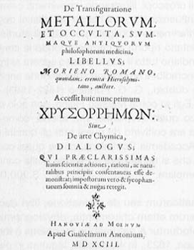 MORIENUS ROMANUS, DE TRANSFIGURATIONE METALLORUM ET OCCULTA SUMMAQUE ANTIQUORUM PHILOSOPHORUM MEDICINA LIBELLUS. ACCESSIT HUIC NUN PRIMUM SIVE DE ARTE CHYMICA, DIALOGUS QUI PRAECLARISSIMA HUIUS SCIENTIA ACTIONES, RATIONI, AC NATURALIBUS PRINCIPIIS CONSENTANEAS ESSE DEMOSTRAT, IMPOSTORUM VERO SYCOPHANTORUM SOMNIA ET NUGAS RETEGIT, HANOVIA AD MOENUM, 1593, IN 8°, PP. 79: EDIZIONE ORIGINALE, ESTREMAMENTE RARA DEL PRESUNTO PRIMO TESTO DI ALCHIMIA, TRATTANTE FRA L'ALTRO IL COMPLESSO TEMA DELLA TRASMUTAZIONE DEI METALLI REDATTO PER L'OCCIDENTE AD OPERA DEL ROMANO MORIENO. IL TESTO RISULTA COSI' RARO DA SFUGGIRE A MOLTI REPERTORI ANCHE SPECIALIZZATI QUALI DUVEEN, CAILLET, FERGUSON, DORBON AINE': LO SI E' INDIVIDUATO SOLO SUL VERGINELLI ROTA CHE NE INDICA L'IMPORTANZA ED AL QUALE DEDICA (N. 221) DUE PAGINE DI COMMENTO. IL VOLUME SI TROVA ACCORPATO A MOCK JACOB, DE CAUSIS CONCRETIONIS ED DISSOLUTIONIS RERUM QUARUNDAR TAM EXTRA QUAM INTRA CORPUS HUMANUM. TRACTATIO HISTORICA PHILOSOPHICA ET MEDICINA..., FRIBURG IN BREISGAU, 1596, PP. 16 - 288 - 14: SI TRATTA DI UN'OPERA ORIGINALE E RARISSIMA CHE TRATTA DI ALCHIMIA E IN PARTICOLARE DI ENIGMATICHE MEDICINE RECUPERATE DA AUTORI ANTICHISSIMI E SPESSO MISTERIOSI.