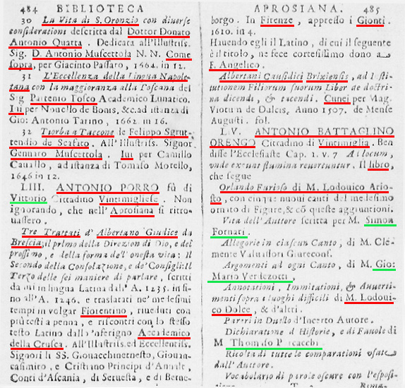 INF. DURANTE Vedi qui SIMON FORNARI - CLEMENTE VALVASSORI - G. M. VERDEZOTTI e soprattutto TOMMASO PORCACCHI