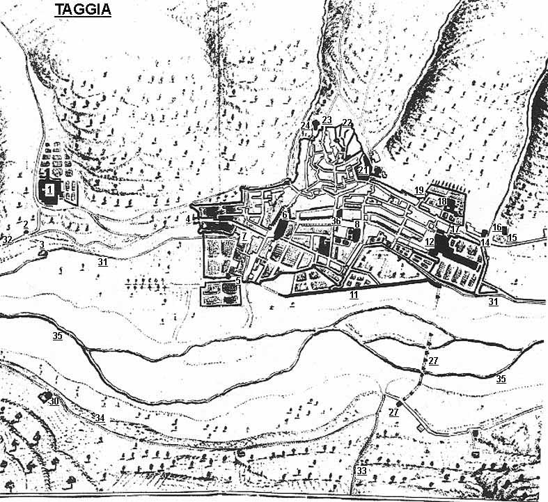 Lo studioso ci informa che nel 1531 TAGGIA contava 611 famiglie (o FUOCHI) e che la sua popolazione ammontava a 1650 abitanti.