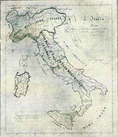 QUESTA RARISSIMA CARTA D'ITALIA E' TRATTA DAL VOLUME "PENSIERI SULL'ITALIA DI UN ANONIMO LOMBARDO" OPERA DI LUIGI TORELLI, USCITA ANONIMA NEL SETTEMBRE 1846.
