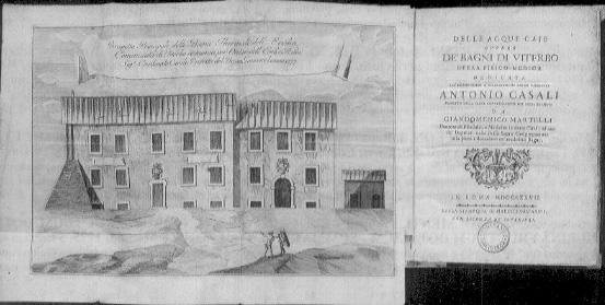 RIPRODUZIONE DA ORIGINALE IN RACCOLTA PRIVATA:IL VOLUME (OPERA DI GIANDOMENICO MARTELLI) E' INTITOLATO DELLE ACQUE CALDE OVVERO DE' BAGNI DI VITERBO. OPERA FISICO - MEDICA, IN ROMA, MACO PAGLIARINI, 1777