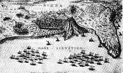 NIZZA: spedizione turca del 1543 alla conquista della cittą. Incisione d'epoca - Fonte Capurro