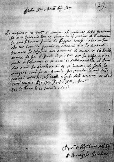 LETTERA ALL'APROSIO DELLA TARABOTTI DA VENEZIA, DATATA 25 SETTEMBRE 1642: CUSTODITA IN BIBLIOTECA UNIVERSITARIA DI GENOVA - EPISTOLARIO APROSIANO