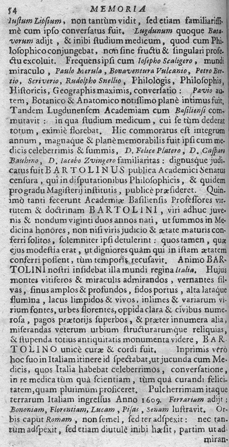 Di KASPAR BARTHOLIN o all'italiana GASPARO BARTOLINI si legge questa memoria in: Witte, Henning: Memoriae medicorum nostri seculi clarissimorum renovatae decas prima (- secunda). - Königsberg, Frankfurt