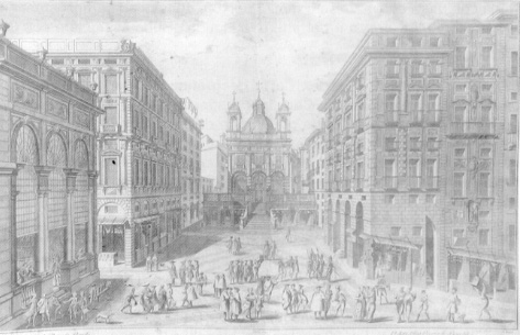 VEDUTA DELLA PIAZZA DE' BANCHI (RACCOLTA PRIVATA) - DAL GIOLFI, XVIII SEC., MM. 680 X 450