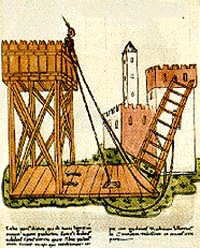 MACCHINE DA GUERRA tratte dal manoscritto (1455) DE RE MILITARI : qui TORRE DA ASSEDIO vedi ALTRA IMMAGINE.