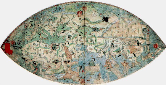 Nell'immagine (tratta dall'originale del XV secolo custodito presso la Biblioteca Nazionale di Firenze) si vede il PLANISFERO DI PAOLO DAL POZZO TOSCANELLI: la semplice visualizzazione permette d'evincere come, avendo calcolata una misura del globo terrestre inferiore al reale) la distanza supposta tra Europa ed Estremo Oriente risultasse alquanto relativa: permettendo di ipotizzare un viaggio non straordinariamente oneroso, come invece poi si rivelò quello di Colombo che, solo per raggiungere le coste occidentali del "Nuovo Mondo", dovette affrontare l'immenso Oceano Atlantico