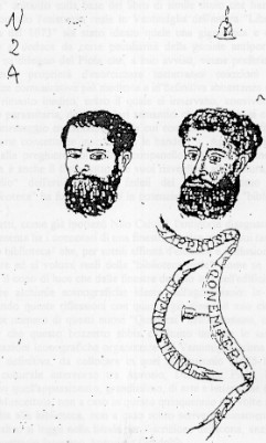 L'immagine, sopra proposta nella sua genuinità, finisce per costituire, come si leggerà, la più credibile alternativa rispetto al celebre quadro di Carlo Ridolfi (vedi qui nell'elenco delle "foto" l'immagine numero 1) che campeggia in una delle sale del fondo antico della biblioteca intemelia, forse lo schizzo del volto dell'Aprosio è l'ultima e più verosimile immagine che di lui ci resta: ma oltre a ciò, per quanto si vedrà di seguito, è presumibile che la vignetta, invero più complessa di quanto appaia ad una prima analisi, sia stata progettata con una sua quasi enigmatica finalità, quella cioè di essere (cosa poi non finalizzata) la vera e sostanziale IMPRESA della "Libraria" istituita dall'Aprosio nella natia Ventimiglia.