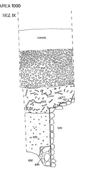 "Sezione stratigrafica dello scavo all'interno del giardino (area 1000)" (schema D. Gandolfi)