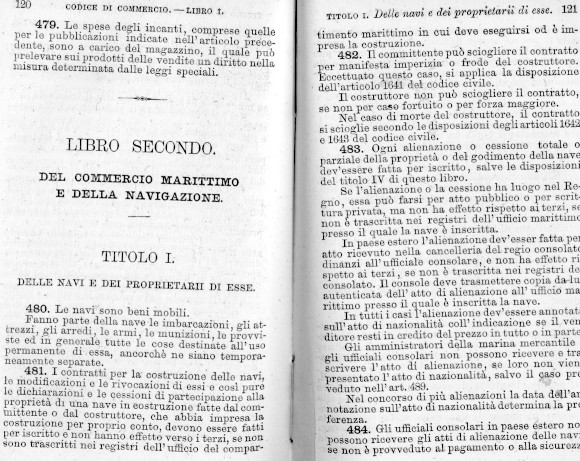 DEL CODICE DI COMMERCIO DEL REGNO D'ITALIA DEL 1882 A FIRMA DI UMBERTO I (GUARDASIGILLI ZANARDELLI) SI RIPRODUCE QUI: