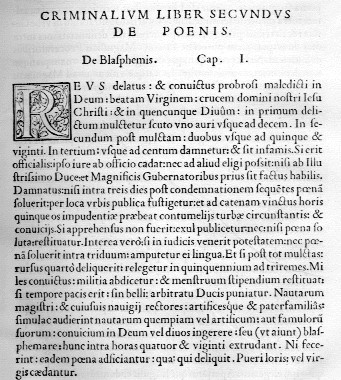 PARTICOLARE DEL TESTO DELL'ORIGINALE DEGLI STATUTI CRIMINALI GENOVESI DEL 1556: VEDI QUI UNA MINIATURA CONTENUTA NEL VOLUME (BIBL. PRIVATA B. DURANTE - VENTIMIGLIA)