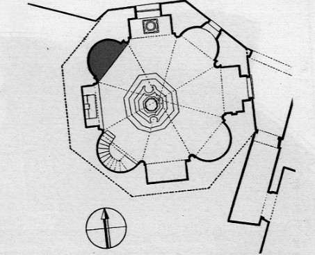 LA PIANTA DEL BATTISTERO TRATTA DAL LAVORO DI DANIELA GANDOLFI (P.79): NELL'IMMAGINE E' EVIDENZIATA LA NICCHIA DI NORD OVEST DOVE SI SONO RINVENUTI FRAMMENTI DI RILIEVI ALTOMEDIEVALI REIMPIEGATI