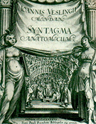Alla Biblioteca Aprosiana si conservano anche molti e rari testi (oltre a diversi manoscritti) di medicina antica. Qui si ammira il frontespizio del Compendio di anatomia di Ioannis Vesling [1598 - 1649] illustre chimico [latinamente noto col nome di Veslingius] che fu chiamato a tenere lezioni di anatomia presso il prestigioso Collegio medico di Venezia. Successivamente passò a reggere la cattedra di anatomia e chirurgia di Padova (il volume custodito alla biblioteca di Ventimiglia conserva l'autografo dell'autore che, della sua opera, fece personalmente dono all'Aprosio)