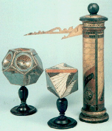 NELL'IMMAGINE PROPOSTA SI VEDONO TRE ESEMPLARI CINQUECENTESCHI DI OROLOGI SOLARI IN PRATICA MERIDIANE PORTATILI, ESTREMAMENTE PRECISE E TECNICAMENTE OLTRE CHE STETICAMENTE SOFISTICATE (VEDI REPERTORIO, P. 259)