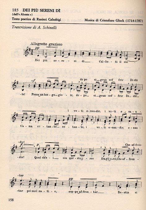 NELL'IMMAGINE SOPRA PROPOSTA SI PUO' VEDERE L'ARIA DEI PIU' SERENI DI' DELL'ALCESTE MELODRAMMA DI RANIERI DE' CALZABIGI (O "DE' CALSABIGI") SCRITTO A VIENNA IN COLLABORAZIONE CON IL GLUCK (COME DEL RESTO GLI ALTRI MELODRAMMI ORFEO ED EURIDICE DEL 1762 E PARIDE ED ELENA DEL 1770.