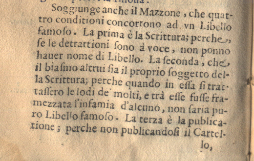 ( Nome dell'autore, Jacopo Mazzoni, nella dedica firmata dal curatore Tuzio Dal Corno: