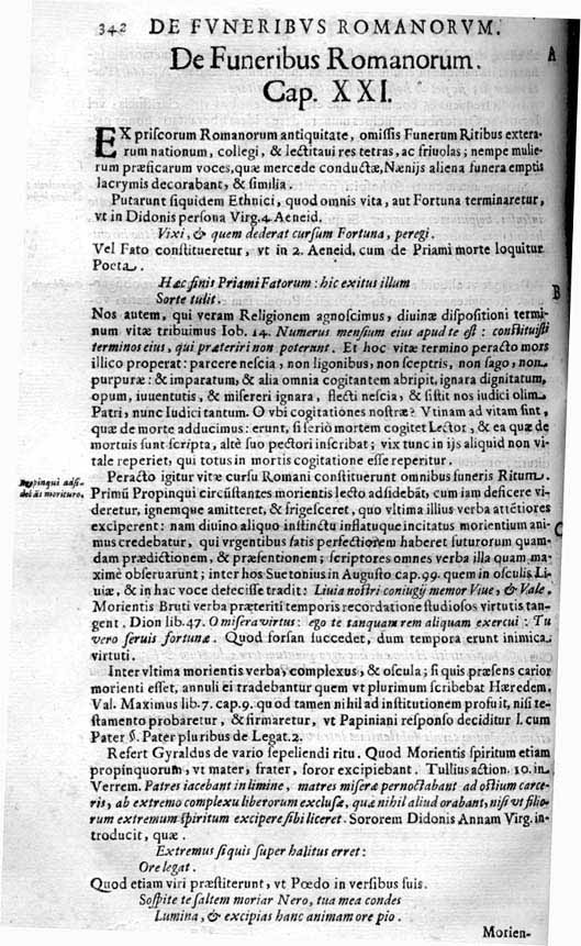 Nel basilare CAPITOLO XXI (pp.342-356) del suo libro, appunto dedicato ai "FUNERALI DEI ROMANI", il CASALI riporta molte sue osservazioni personali sulle NECROPOLI ROMANE che andava esplorando (ma peraltro la civiltà romana era disseminata di NECROPOLI come si vede nella stessa capitale di Albintimilium) ma anche sui vari RITUALI e sui CORTEI FUNEBRI: facilmente scorrendo le pagine si potranno leggere notizie interessanti e visulaizzare reperti da lui esumati.