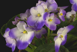 Sul verde intenso delle foglie vellutate e cuoriformi, disposte a rosetta, si staccano i piccoli fiori blu, rosa o bianchi a fiore semplice o doppio.