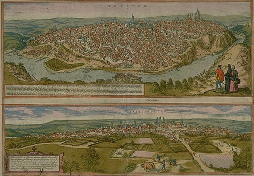 INCISIONE A COLORI SU STAMPA DI UNA CARTA ANTIQUARIA DELLA CITTA' DI TOLEDO (DA BIBLIOTECA PRIVATA)