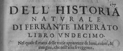 INDICI MODERNI E ANTICHI DELLA HISTORIA NATURALE DI FERRANTE IMPERATO