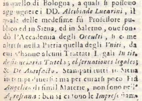 Lasciata Genova ove prese l'abito degli Eremitani di S. Agostino al Convento della Consolazione il giovane Aprosio si recò, iniziando la stagione dei viaggi e della formazione, in Toscana (vedi la cartografia interattiva dei vari posti che visitò per periodi diversi) e prese stanza a Siena, ove soggiornò a lungo visitandone il territorio anche se non di tutte le sue esperienze parla nella Biblioteca Aprosiana [per esempio nello Scudo di Rinaldo I egli citò per esempio un soggiorno, non menzionato in questa relazione del 1673, a Grosseto (vedi la carta iperattiva), raggiunto dall'area senese, in occasione del quale Angelico assistette al terribile spettacolo di una strega messa al rogo tal Palandrana (pag. 53, dall'alto)]= ma l'essenza delle operazioni aprosiane in Toscana si svolse in Siena e circondario così che splendida città che tanto per lui avrebbe rappresentato culturalmente e non (vedi i collegamenti a corredo dell'immagine) conobbe espressioni di grande cultura e si meritò tra le tante personalità che conobbe un forte legame amicale con Alcibiade Lucarini celebrato autore di Imprese e con altri elencato da Aprosio tra gli autori di cui era sempre consigliabile la lettura