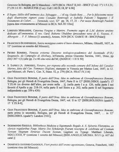 IL PREZIOSO ELENCO E' ANCORA DOVUTO ALLA CORTESIA DEL SIGNOR RENATO GIULIETTI RESPONSABILE DEL SETTORE CULTURA DEL COMUNE DI MONTE SAN SAVINO (PROVINCIA DI SIENA) CHE HA DOVEROSAMENTE USATO LE SIGLE DELLE BIBLIOTECHE IN CUI HA INDIVIDUATO LE OPERE DEL MINOZZI