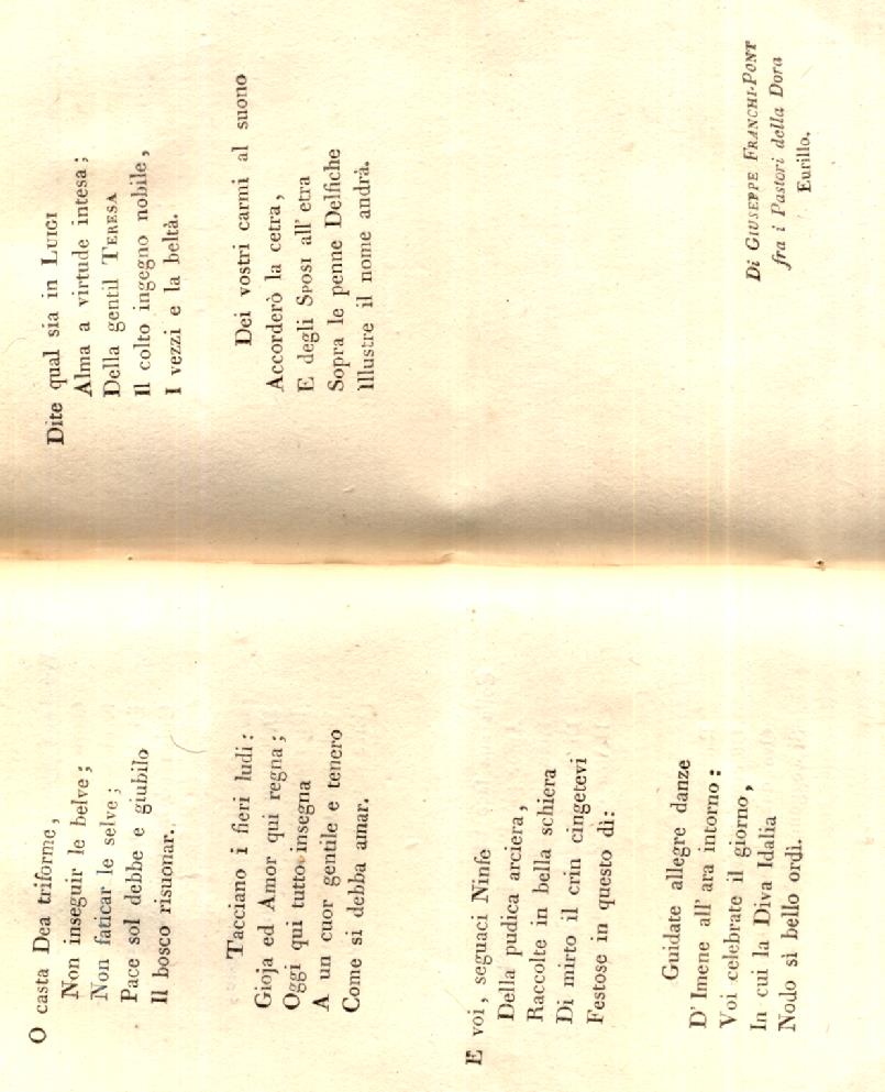 Nelle faustissime nozze del signor Berlia-Lapič e la damigella Teresa Napione Cocconato , Epitalamio di Giuseppe Franchi-Pont fra i Pastori della Dora Eurillo, Torino , dai tipi di Domenico Pane e comp., 1808