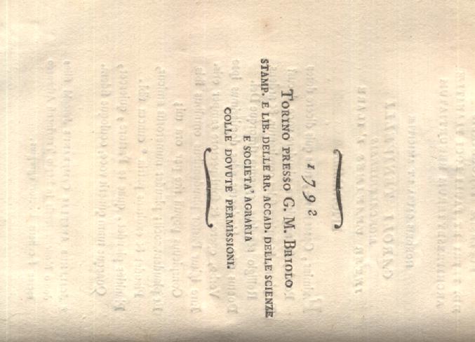 Al molto illustre e molto reverendo arciprete don Giuseppe Andrea Camerano torinese dottore di sacra teologia nel solenne ingresso di lui alla chiesa parrocchiale di Pianezza questi raccolti versi in sincera testimonianza d'amicizia, d'applauso e di venerazione il sacerdote don Francesco Buglioni de' conti di Monale e Bastia saluzzese dottor d'ambe leggi e socio unanime D C D, Torino per il Baiolo, 1792