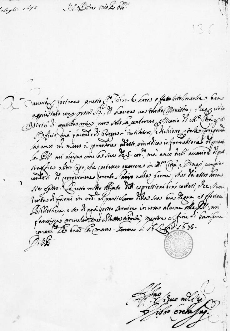 FONDO APROSIO - BIBLIOTECA UNIVERSITARIA DI GENOVA RELAZIONI TRA INQUISITORI GENERALI DEL SANT'OFFICIO IN GENOVA ED ANGELICO APROSIO 17. - ANGELICO APROSIO VICARIO DELL'INQUISIZIONE E LE SUE PREOCCUPAZIONI PER IL RILEVANTE COMPITO DA ESPLETARE