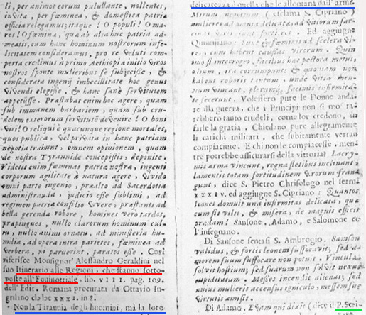 PADRE SCRIVANI APROSIO NON DIMENTICO' MAI L'ASPRO SCONTRO CON A. TARABOTTI SU FEMMINISMO E ANTIFEMMINISMO = ANCHE IN QUESTO CASO LANCIA UNO STRALE ALLA TARABOTTI E VUOLE MALIZIOSAMENTE EVIDENZIARNE L'IRRUENZA, L'IMPRUDENZA, INSOMMA LA FEMMINEA IMPREVEDIBILITA' = NON SCRIVE PER NULLA A CASO LA TIRANNIA DEGLI UOMINI MA "PER CHI SA" VUOLE RAMMENTARE LA TIRANNIA PATERNA -CIOE' IL TITOLO PROIBITISSIMO DELL'OPERA EDITA POI DALLA TARABOTTI CON IL MENO PROVOCATORIO E NON CENSURATO NUOVO TITOLO DE LA SEMPLICITA' INGANNATA- E LASCIAR INTENDERE CHE, UN PO' COME IN TUTTO A RIGUARDO DELLE DONNE, ANCHE IN MERITO AL NEGAR ALLE FEMMINE DI PRENDER L'ARMI E DIVENTAR SOLDATESSE CIO' CHE PER L'IRRUENTA TARABOTTI ERA TIRANNIA DI UOMINI PER LUI, ERUDITO ED ORMAI PRUDENTE E STIMATO RELIGIOSO PREDICATORE, E' SEMMAI DA REPUTARSI "DELICATEZZA DI UOMINI" = MA A BEN LEGGERE SON ORMAI I SINGULTI DI UNO SCONTRO E LA RIPROVA DI UN INTELLETTUALE ANTIFEMMINISTA CHE SI "ARRAMPICA SUGLI SPECCHI" CIOE' SULLE ARGUZIE ESTREME PERCHE' NON E' STATO CAPACE D'AMMETTERE LA SUA SCONFITTA NEL DIBATTITO CON UNA DONNA...VIZIO A PARERE D'ALCUNI ANTICO ED OGGI SUPERATO...MA FORSE NEMMENO OGGI COSI' SUPERATO COME SI VORREBBE CREDERE O ALMENO FAR CREDERE!