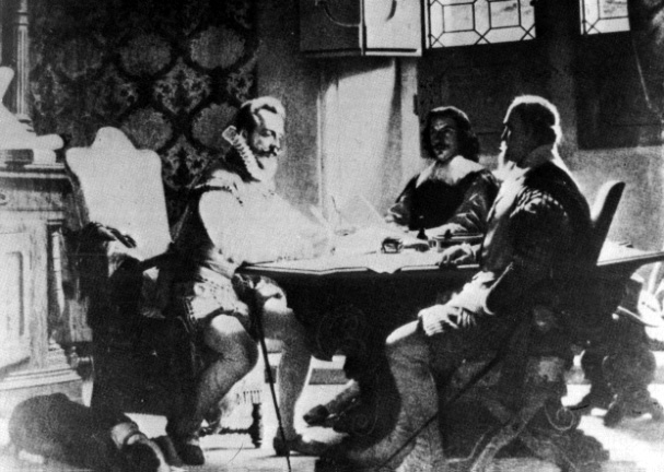 Il duca Carlo Emanuele I di Savoia mentre firma a Bruzolo il trattato di pace con i rappresentanti francesi (la tela è del Bellucci). A destra del duca il Connestabile di Francia Lesdiguières che nel 1625 si farà alleato del Savoia per la conquista dei territori rivieraschi Carlo Emanuele I di Savoia, detto il Grande e soprannominato dai sudditi Testa di Fuoco per le manifeste attitudini militari e per alcuni autori il Gobbo (Rivoli, 12 gennaio 1562 – Savigliano, 26 luglio 1630), figlio di Emanuele Filiberto di Savoia e di Margherita di Francia, fu Marchese di Saluzzo (dal 1588), Duca di Savoia, Principe di Piemonte e Conte d'Aosta, Moriana e Nizza dal 1580 al 1630. Fu anche Re Titolare di Cipro e Gerusalemme. Nasce nel Castello di Rivoli e diviene Duca di Savoia il 30 agosto 1580, quando decede il padre Emanuele Filiberto. Era di gracile costituzione, con le spalle leggermente arcuate, i lineamenti delicati, l'incarnato pallido. Fin da bambino, tuttavia, il padre lo aveva abituato ad ogni sorta di esercizio fisico e di sport, rendendolo un abile cavaliere e un invincibile spadaccino. Nel 1585 sposa l'Infanta Caterina Michela d'Asburgo, figlia di Filippo II ed Elisabetta di Valois; la ragazza era di piccola statura, esangue, malaticcia, con il volto butterato dal vaiolo. Ambizioso e sicuro di sé, grazie all'ottimo stato del Ducato trasmessogli dal padre, cerca di espandere territorialmente il proprio potere. Dopo la morte di Caterina Michela d'Asburgo, avvenuta il 6 novembre 1597, Carlo Emanuele I di Savoia si risposò trentadue anni dopo in segreto con la Marchesa di Riva di Chieri Margherita di Rousillon, figlia di Gabriele di Rousillon "Signore di Châtelard" e di Laura di Saluzzo dei "Signori di Monterosso". Da questa unione nacque Don Antonio di Savoia, commendatario di quattro abbazie, inclusa la Sacra di San Michele. Nell'autunno 1588, approfittando delle guerre civili che dilaniavano la Francia di suo cugino di primo grado Enrico III, occupò militarmente il Marchesato di Saluzzo, che stava sotto la protezione della Francia. Il nuovo Re di Francia (già Re di Navarra fino al 1589), Enrico IV, gli intimò la restituzione del territorio alla corona francese ma Carlo Emanuele I rifiutò: era guerra contro i francesi. Gran parte dei combattimenti si svolse in Alta Val Susa ed in Val Chisone: i francesi erano comandati dal Lesdiguières, detto "la volpe del Delfinato". La guerra si sviluppò con alterne vicende finché si concluse con la pace di Vervins (2 maggio 1598), che rimandò ad un successivo accordo la vertenza sul Marchesato. Carlo Emanuele riprese i contatti con la Spagna, Enrico IV allora si infuriò e minacciò la ripresa delle ostilità. Intervenne anche papa Clemente VIII quale arbitro, ma scoppiò ugualmente, nel luglio del 1600, la guerra franco-savoiarda, che si chiuse, grazie anche alla mediazione pontificia ad opera del cardinale Pietro Aldobrandini, con il trattato di Lione (17 gennaio 1601). La conquista territoriale venne riconosciuta da Enrico IV a Carlo Emanuele I in cambio della Bresse e altre cessioni territoriali oltre le Alpi. Il baratto ribadiva la vocazione italiana dei Savoia e legava i destini della casata, di ceppo pur sempre borgognone, a quelli della penisola. Carlo Emanuele annotò nei suoi Ricordi: "È molto meglio avere uno Stato solo, tutto unito, come è questo di qua dei monti, che due, e tutti e due malsicuri". Riprendono le persecuzioni dei protestanti nel Ducato. Allarmato da un possibile riavvicinamento tra Francia e Spagna, Carlo Emanuele si riavvicina ai francesi. Anche la Spagna tenta di riportare nella sua orbita il Ducato. Dopo lunghe trattative fra Carlo Emanuele e gli emissari di Enrico IV, si giunge al Trattato di Bruzolo (25 aprile 1610). Il trattato stipulato presso il Castello di Bruzolo in Val di Susa, a metà strada tra Torino e l'antico confine tra Delfinato e Piemonte, prevede un'alleanza stretta fra il Ducato e la Francia in chiave antispagnola: una vittoria in un'eventuale guerra contro la Spagna avrebbe portato ai Savoia il Ducato di Milano; era previsto nel caso anche il matrimonio dell'erede di Carlo Emanuele, Vittorio Amedeo, con Elisabetta, figlia di Enrico IV. Ma l'assassinio di quest'ultimo (14 maggio 1610) rimette tutto in discussione. Maria de' Medici, vedova di Enrico IV e reggente in nome del Delfino (il futuro Luigi XIII) non ancora adulto, rifiuta di riconoscere il trattato di Bruzolo e Carlo Emanuele si trova isolato e alla mercé della Spagna. A questo punto il re di Spagna pretese da Carlo Emanuele pubbliche scuse, nel corso di un'umiliante cerimonia: il figlio del duca di Savoia, Emanuele Filiberto dovette recarsi a Madrid dove, il 10 novembre 1610 s'inginocchiò di fronte al re Filippo III e lesse la richiesta di perdono. La guerra di successione per il Ducato di Mantova = La morte improvvisa del genero di Carlo Emanuele, Francesco IV Gonzaga, alla fine del 1612 scompiglia nuovamente la situazione: Francesco aveva avuto da Margherita di Savoia una figlia, Maria, ed un figlio maschio, Ludovico, morto però poco prima del padre. Subentra a Francesco il fratello Ferdinando Gonzaga, che rinuncia alla porpora cardinalizia per il ducato. Carlo Emanuele non accetta, sostenendo di voler difendere i diritti della nipote Maria e l'applicazione degli accordi matrimoniali della figlia, stipulati al tempo del matrimonio, con Vincenzo Gonzaga, padre di Francesco e di Ferdinando Gonzaga, ed entra in armi occupando nell'aprile 1613 Trino, Moncalvo ed Alba. Insorgono le altre potenze, vi sono vari rovesciamenti di fronte (Luigi XIII manda nel 1617 persino un esercito, al comando del Lesdiguières, in soccorso del ducato per la riconquista, riuscita, di Alba, occupata dagli spagnoli) e la guerra si trascina fino al 1618 con un nulla di fatto. La guerra di successione del Monferrato = La questione della successione nel Ducato di Mantova rimette in discussione i rapporti fra Spagna e Francia e la guerra riprende. Luigi 
