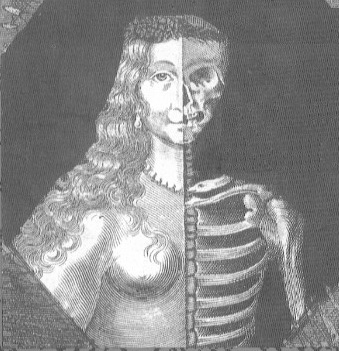 IL TITOLO ORIGINALE DELLA STAMPA E' A SUO MODO ICONICO: LO SPECCHIO DELLA VITA E DELLA MORTE E, ASSIEME ALL'IMAGINE DI CUI COSTITUISCE IL MOTTO, VA A COSTITUIRE L'EMBLEMA EPOCALE DELLA FEMMINILITA':