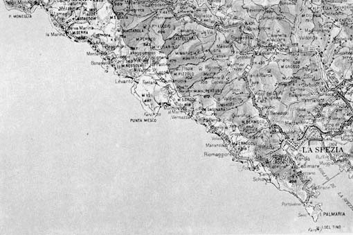 L'ESTREMO LEVANTE LIGURE CON EVIDENZIATE LE "CINQUE TERRE"