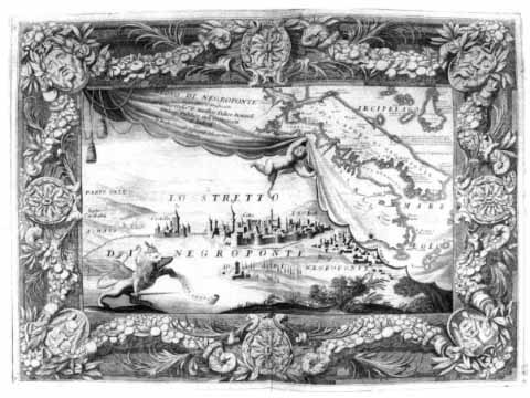 L'isola di NEGROPONTE (l'attuale EUBEA) da: V. Coronelli, Isolario, Venezia, 1696.