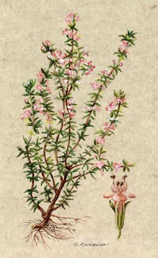 genere (Thymus) di piccoli arbusti aromatici della famiglia delle Labiate, di cui sono note le specie Thymus serpyllum (v. serpillo) e Thymus vulgaris, quest'ultima diffusa nei luoghi aridi della regione mediterranea, coltivata per condimenti e per l'estrazione di un olio essenziale (olio di timo) usato in profumeria, saponeria e in medicina.
