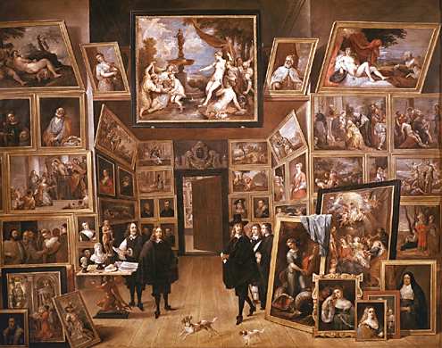 David Teniers il Giovane è fra i più significativi pittori fiamminghi di genere del XVII secolo. Uno dei suoi soggetti prediletti fu l'arciduca GUGLIELMO LEPOPOLDO D'AUSTRIA nella sua pinacoteca, come nell'olio su tela qui proposto, datato 1651. I dipinti di Teniers sono importanti anche perché contribuiscono a far luce sul modo in cui, all'epoca, venivano disposti i quadri alle pareti delle pinacoteche.