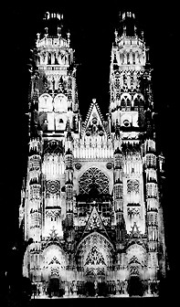 anni 50, vista notturna della facciata della cattedrale