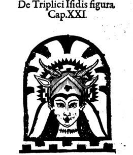 Nell'immagine, da un reperto archeologico (qui ingrandito e con testo antiquario esplicativo) rinvenuto nel XVII secolo a Roma sulla via Appia si visualizza perfettamente una non comune e per certi aspetti inquietante fatta raffigurare e poi editata dell'antiquario G. B. Casali della divinità egizia di ISIDE = del reperto il Casali scrisse profusamente come qui si legge (l'immagine era a colori e il Casali, oltre a riprodurla in tal modo, ne diede la sua interpretazione) in una vasta sezione del De veteribus aegyptorum ritibus edito a Roma, per A. Phaei, nel 1644 = oltre a ciò nella stessa opera l'autore proprietario entro il proprio romano museo di simulacri di divinità egizie nella stessa opera entro il Capitolo XIII si propose di stendere una storia mitologica documentata in merito ad Iside e Osiride.