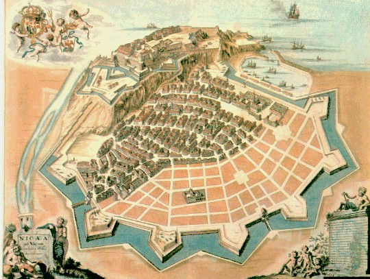 Vedi qui una carta seicentesca della cittadella fortificata di Nizza sabauda con una sequenza di didascalie esplicative dell'assedio da parte della flotta imperiale turchesca occidentale unita a una minore squadra navale francese Nella stampa da incisione anonima (mm.476 x 626) su disegno di Gaspare Baldoino del 1661 [tratta dal "Theatrum Sabaudiae"] si nota il PORTO DELLA SABAUDA NIZZA MARITTIMA che, a metà XVI secolo, fu sede di lungo ASSEDIO ad opera di navi turchesche e francesi