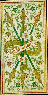 Il GIOCO DELLE CARTE si diffuse in Italia, in Francia e quindi in tutta Europa solo nel Quattrocento forse importato dagli Arabi (in particolare tramite gli Arabi di Spagna) o forse introdotto da quanti erano stati in Terrasanta al seguito delle Crociate o spintivi da ragioni commerciali. Il GIOCO ha avuto la sua origine in Cina sotto la dinastia Tang tra il 618 ed il 906, fu quindi importato dai mercanti arabi in Medio Oriente (il nome spagnolo delle Carte "naipes" non a caso deriva infatti dall'arabo "na'ib"). In Italia e in Francia ottenne subito quel successo che praticamente non ha mai avuto fine: divenne uno fra i divertimenti principali sia nel contesto dei BANCHETTI sia nel corso delle FESTE e delleVEGLIE. Diffuso originariamente tra i CETI DOMINANTI il GIOCO DELLE CARTE approdò rapidamente al patrimonio ludico delle classi subalterne (nell'immagine sopra si vede -conservato a Bergamo, nell'Accademia carrariana- un esemplare di TAROCCO italiano del XV secolo).