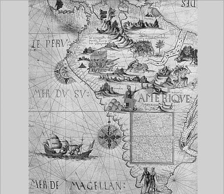 CARTA DELL'AMERICA MERIDIONALE NEL 1550