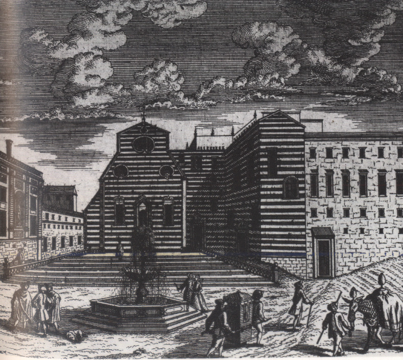Probst e Werner, scuola tedesca del '700 (Piazza S. Domenico nel Settecento), Genova, Museo di S. Agostino, collezione topografica, incisione
