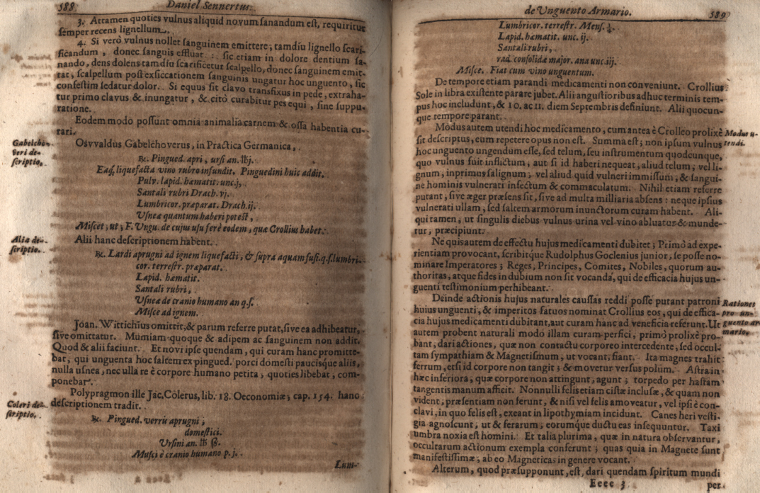 NELL'IMMAGINE SOPRA PROPOSTA SI VEDE L'INCIPIT DELL'OPERA (CONTENUTA NEL CORPUS DEL TEATRO SIMPATETICO [PP.585-598]) DELL'ARCHIATRA DANIEL SENNERTUS.