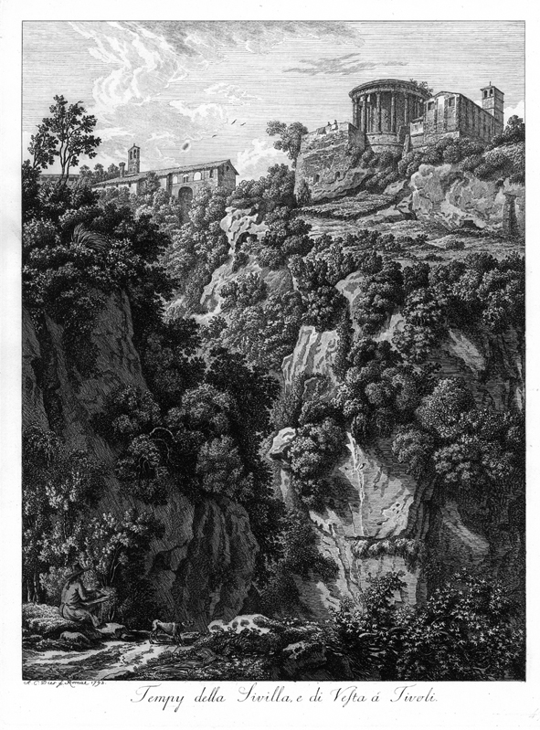 IMMAGINE ANTIQUARIA DEL TEMPIO DI VESTA A TIVOLI E DELLA DIMORA SACRA DELLA SIBILLA TIBURTINA E/O ALBUNEA