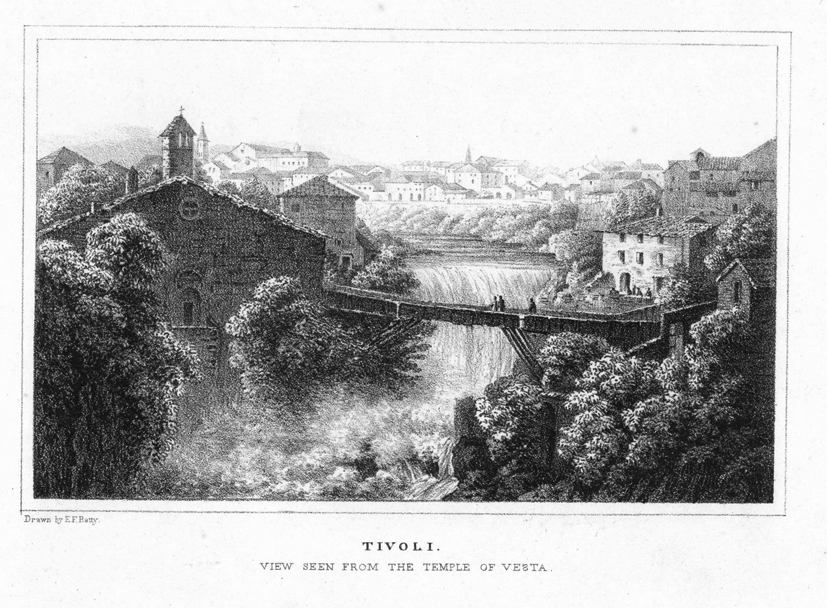IMMAGINE ANTIQUARIA DEL TEMPIO DI VESTA A TIVOLI E DELLA DIMORA SACRA DELLA SIBILLA TIBURTINA E/O ALBUNEA [leggesi A. C. Dies f[ecit] Romae 1793]