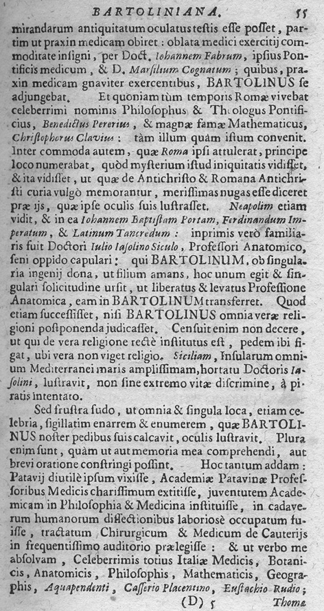 Di KASPAR BARTHOLIN o all'italiana GASPARO BARTOLINI si legge questa memoria in: Witte, Henning: Memoriae medicorum nostri seculi clarissimorum renovatae decas prima (- secunda). - Königsberg, Frankfurt