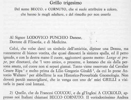 BECCO - CORNUTO ESCROLOGIA - COMPOSIZIONE ESCROLOGICA e poi vedi POESIA GIOCOSA, EROICOMICA, DI INTRATTENIMENTO. Leggi soprattutto = ERUDIZIONE E SANTA INQUISIZIONE "AL SERVIZIO" DI FILOLOGIA, ETIMOLOGIA E COSTUME: DALLA GRILLAJA LE RIFLESSIONI SULL'EVOLUZIONE NELLE COSTUMANZE PASTORALI ED AGRONOMICHE DI UNA TERMINOLOGIA A SFONDO EROTICO E SESSUALE SIA PER RAGIONI RELIGIOSE CHE LESSICALI = UOMO = BEKKO, BECCO, CORNUTO ECC. - DONNA = VACCA - BELENO, BELINO, BELIN
